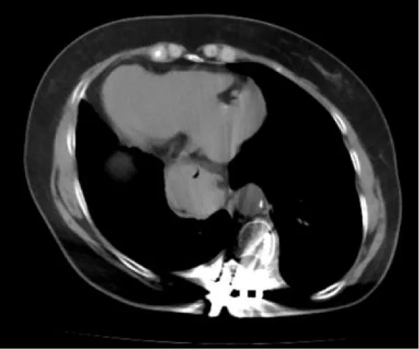 The patient had a history of spinal correction surgery for scoliosis five years ago, during which her SIT was identified. Our CT exam and gastrogram proved her history, with a hernia sac measuring 35*48 mm (Figures 2-4). All routine laboratory tests were within normal limits.