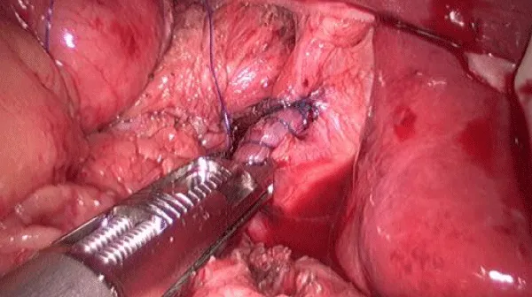 Figure 6: Approximation of the crura with an auto-suturing device.